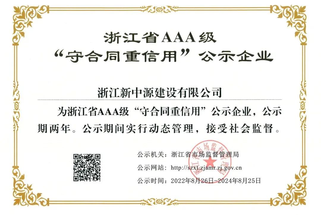 根據(jù)浙江省市場監(jiān)督管理局下發(fā)的《關(guān)于公示2022年浙江省AAA級“守合同重信用”企業(yè)的通知》,公司憑借良好的信譽和優(yōu)質(zhì)的服務,榮獲2022年浙江省AAA級“守合同重信用”企業(yè)榮譽稱號。